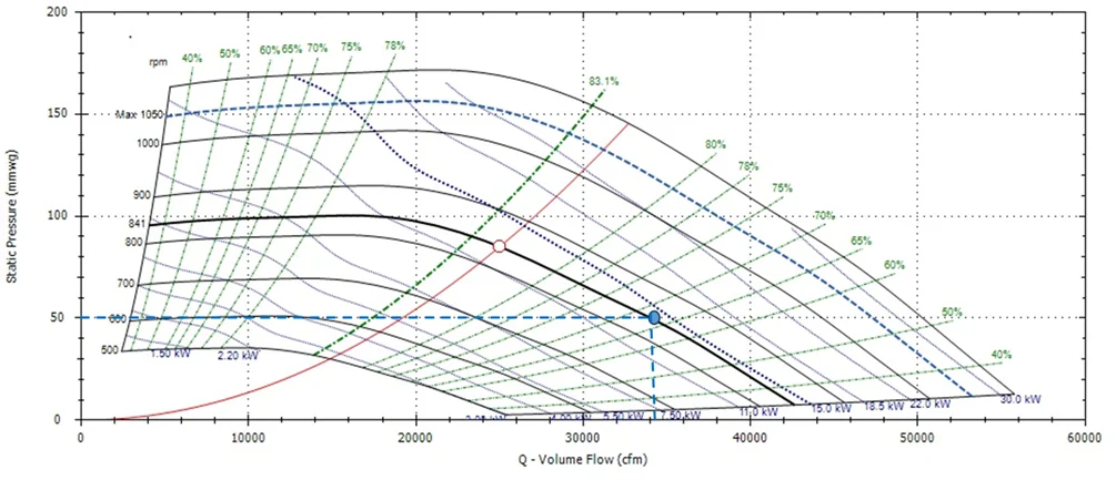 - Blower noise level at operating point.