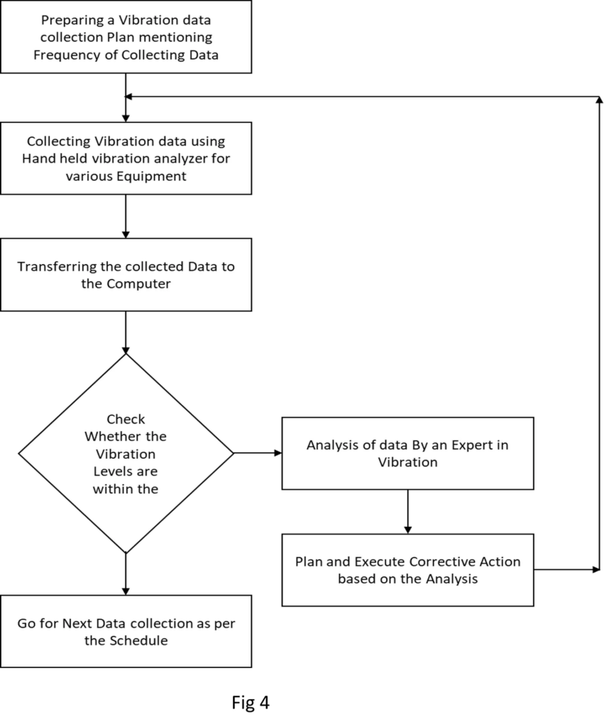 It can be inferred from the flow chart that the data collection happens manually with the help of a hand-held vibration analyzer. To analyze the data and to arrive at a solution and to implement the solution for the inaccuracies observed, we need the support of an expert.